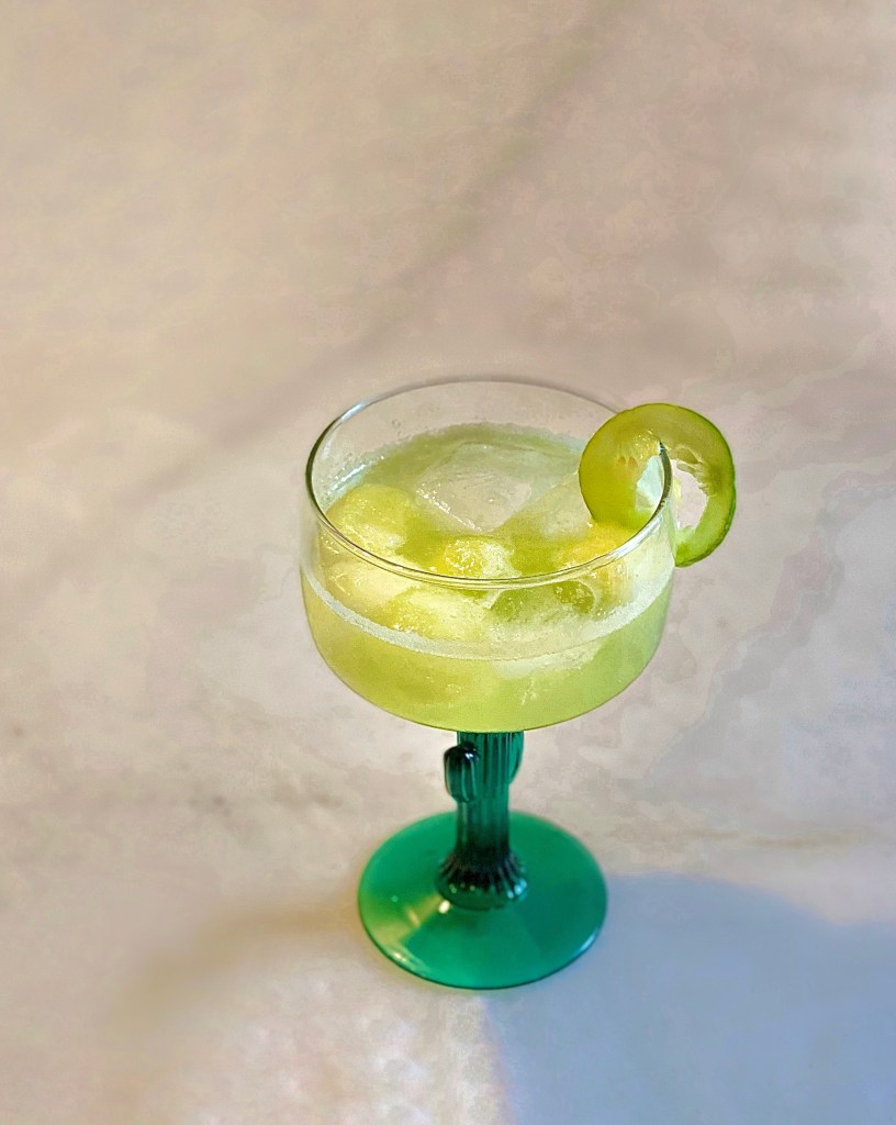 - Once you’ve scraped out the seeds from a melon, hold it steady with one hand and scoop with melon baller. Pressing the baller down into the flesh of the melon and rotate it to form a ball-shaped piece. Transfer 6 melon ball to the glass.