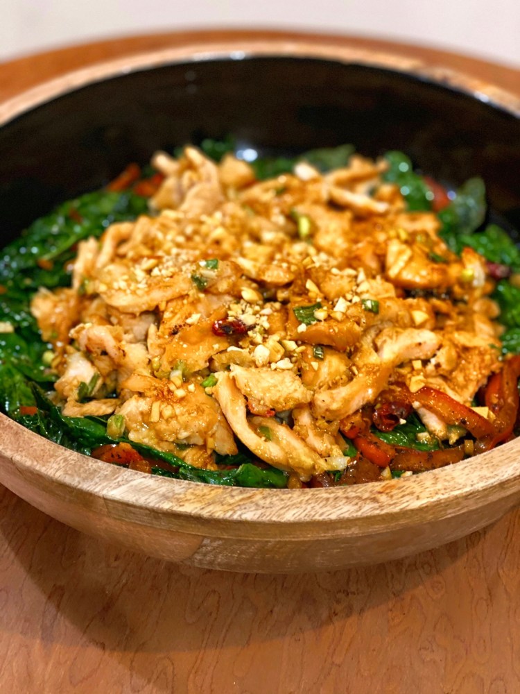 - To plate up, add your salad leaves to the bowl, top it with the chicken and then top it with salad dressing and lime juice.