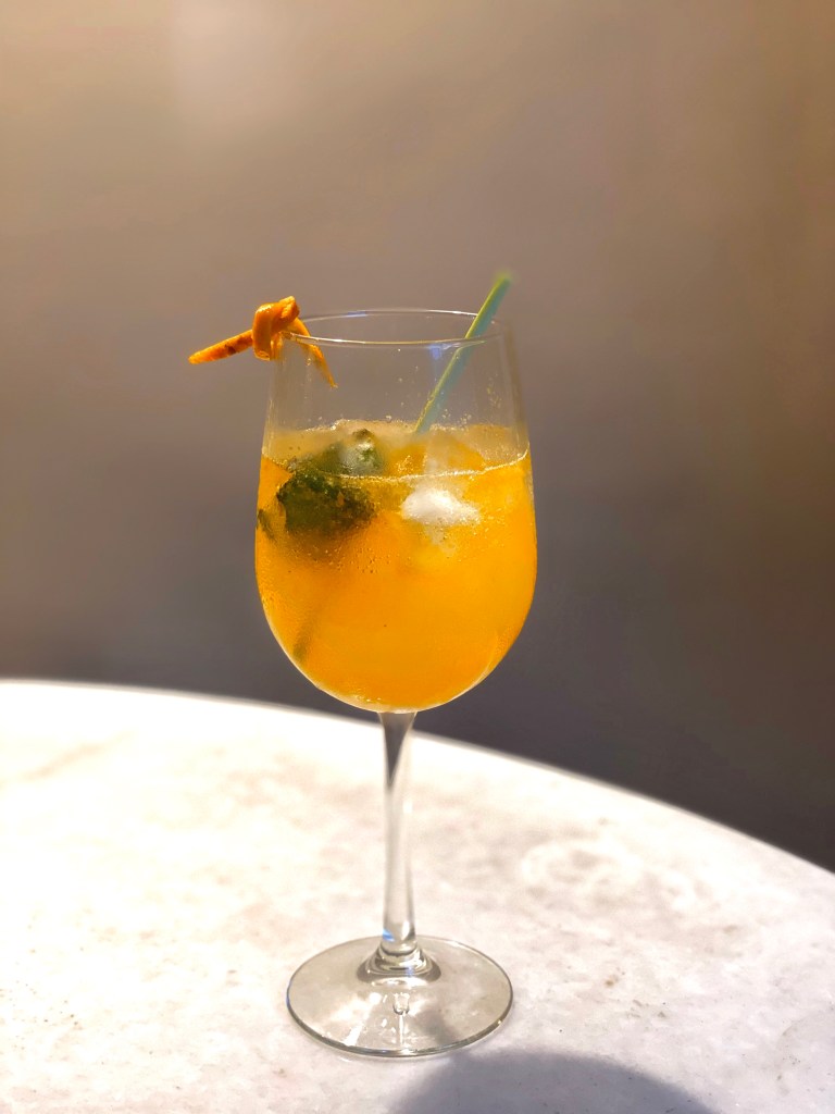 - Garnish with an orange peel & lemongrass stick and voila, your Orange & Kaffir Lime Spritzer is ready.