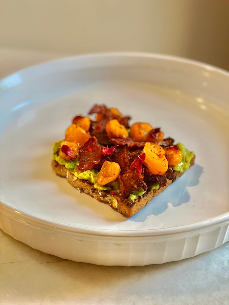 - Garnish with chilli flakes & edible flowers, and enjoy your new favourite BAT (Bacon, Avocado, Tomato) Toast.